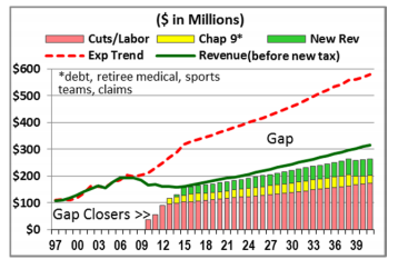 One of the remaining hurdles is getting voter approval of a ¾-cent sales tax on Nov. 5. The plan said the alternative to Measure A is $11 million in additional “brutal” spending cuts and the loss of “negotiating room to cut deals with our creditors.”
