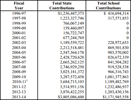 Employers were given a contribution “holiday,” dropping the annual state payment from $1.2 billion to $159 million in fiscal 1999-00 and to $157 million the following fiscal year. Pension reform legislation last year bans contribution holidays.