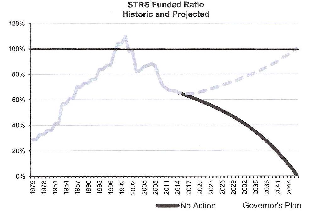 After a slow climb from the 1970s, when CalSTRS only had 30 percent of the projected assets needed to pay future pension obligations, a soaring stock market briefly pushed CalSTRS funding over 100 percent, sparking actions that led to underfunding.