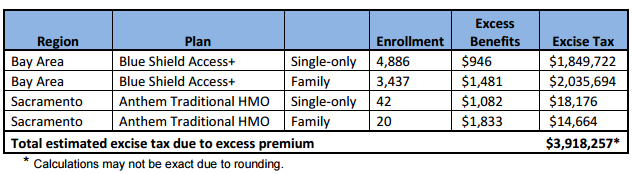A preliminary report by the staff of the California Public Employees Retirement System this month used the example of two high-cost plans that would be hit by an annual “Cadillac Tax” estimated to total $3.9 million.