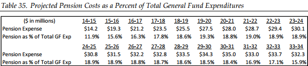 One of the slides outlining the summary of the recovery plan said: “CalPERS costs continue to escalate, making in-house service provision for certain functions unsustainable.”