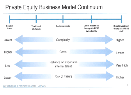 Despite support from the CalPERS board and a hard-working staff, said Eliopoulos, “the particular public nature and fishbowl of CalPERS may have reached a tipping point for us in private equity.”