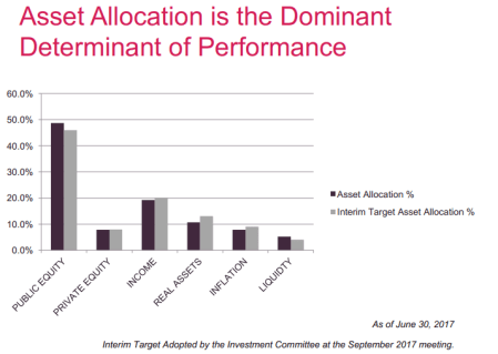 In September of last year, the CalPERS board, in a closed session not revealed until later, shifted the investment portfolio to less risky but lower-yielding investments (see chart).