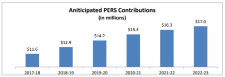 In five years, Boyles said, the payment to CalPERS is expected to be $18 million and 25 percent of general fund revenue as the employer rate for safety employees increases from 50 percent of pay to 80 percent of pay.