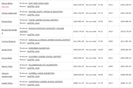 Top 10 CalSTRS pensions in 2016 listed on Transparent California