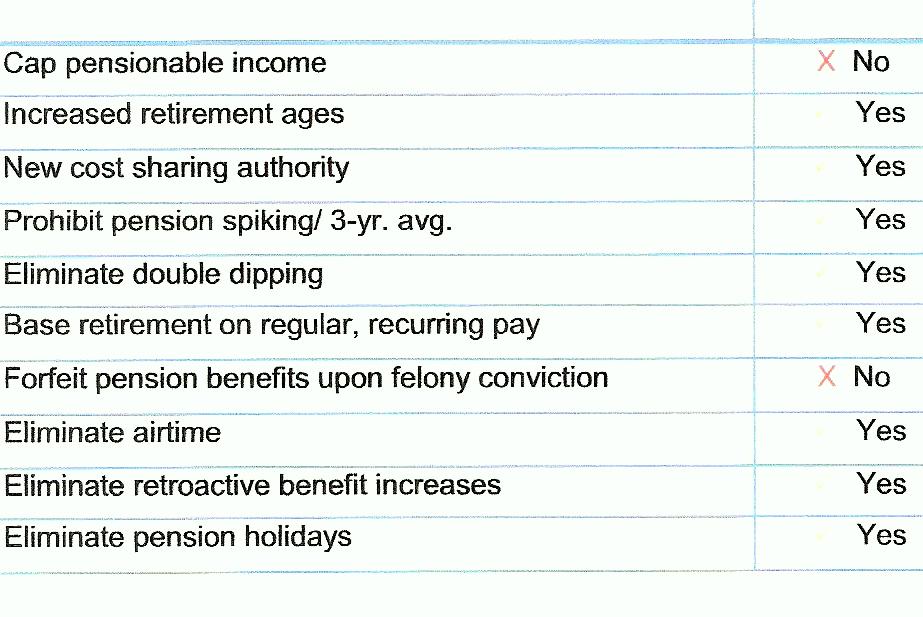 But for most cities the legislation extends retirement ages, caps pensions and gives new hires a lower pension by imposing a single formula (rolling back increases after SB 400) instead of allowing bargaining on a menu of different formulas.