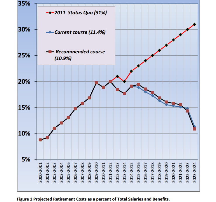 A board “ad hoc” committee on pension reform in 2011 led by Supervisors Rabbit and Shirlee Zane set a target of reducing pension costs to 10 percent of pay during the next decade, while also proposing an independent citizens advisory committee.