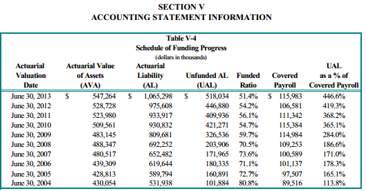 The 4,600-member system owes $1 billion for pensions promised in future decades, up from $692 million in 2008. The projected assets from employer-employee contributions and investment earnings only increased from $488 million to $547 million.